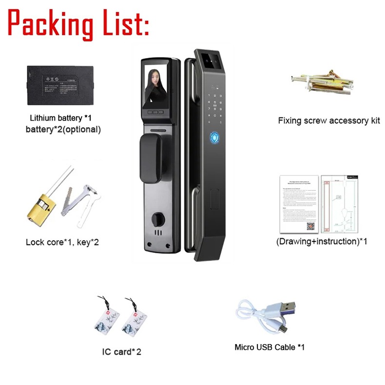 تجهیزات داخل کارتن دستگیره دیجیتال (تشخیص چهره-اثرانگشتی-کارتی -رمزی و موبایلی) FY01: