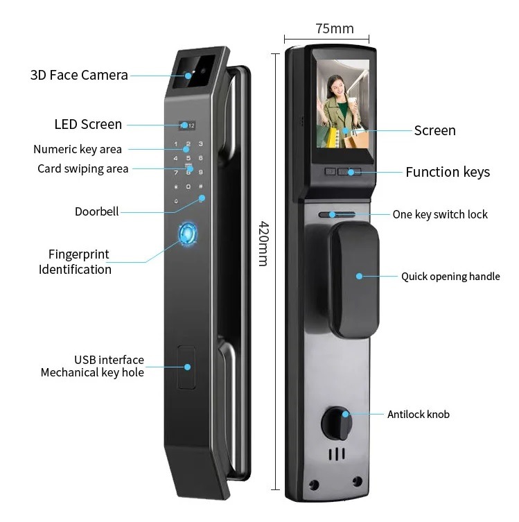 مزایای دستگیره دیجیتال تشخیص چهره -کارتی -رمزی وموبایلی FY01: