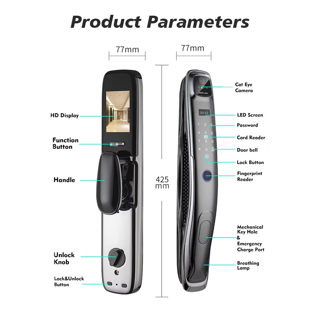 مزایای دستگیره دیجیتال تشخیص چهره -کارت -رمز و موبایلی TY11: